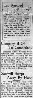 An act of humanity was performed at Williamsport this morning when Luther Silvers and Newton McAllister rescued a cat from a tree standing out in the flood below the canal bridge.